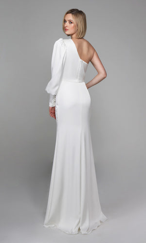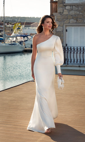 ALYCE Paris 7065 Bridal One Shoulder Neckline Buttons Straight Dress