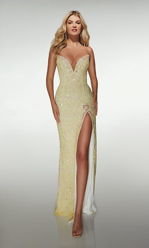 The straight/sheath (or column) silhouette gracefully skims to show off your body’s natural shape. A person with a thicker waist and wider hips will love this silhouette as it hides these flaws very comfortably. An ALYCE Paris formal straight/sheath evening dress style’s straight lines lengthen—and lend an effortless and modern air.