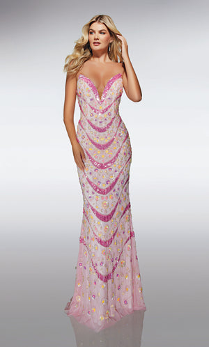 The straight/sheath (or column) silhouette gracefully skims to show off your body’s natural shape. A person with a thicker waist and wider hips will love this silhouette as it hides these flaws very comfortably. An ALYCE Paris formal straight/sheath evening dress style’s straight lines lengthen—and lend an effortless and modern air.