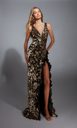 ALYCE Paris 61975 Alyce Long Plunging Slit Straight Dress