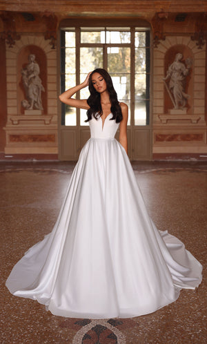 ALYCE Paris 7024 Bridal Plunging Neckline Simple A Line Dress