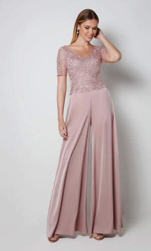 ALYCE Paris 27564 Special Occasion V-neckline Embellished Jumpsuit Dress
