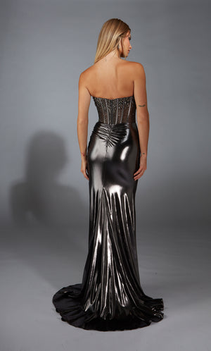 If sequin dresses aren’t your vibe, you can opt for subtle metallic or sparkly dress styles. Glitter prom dresses make it easy to stand out from the crowd, and their sparkly shine screams pure diva as you strike a pose on the dance floor. The most popular metallic colors for sparkly prom dresses are blue, purple, silver and gold. Insider tip: ALYCE Paris signature color “Dripping in Diamonds” is the perfect metallic silver prom dress with the right amount of sparkle.