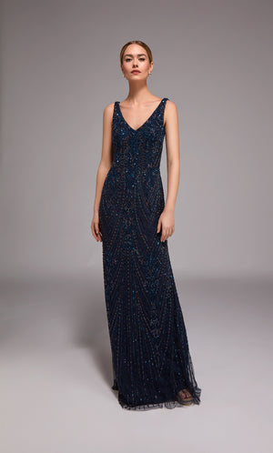 The straight/sheath (or column) silhouette gracefully skims to show off your body’s natural shape. A person with a thicker waist and wider hips will love this silhouette as it hides these flaws very comfortably. An ALYCE Paris formal straight/sheath evening dress style’s straight lines lengthen—and lend an effortless and modern air.