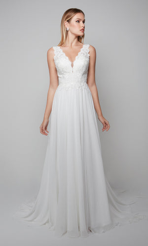 ALYCE Paris 7071 Bridal Plunging Neckline Modest A Line Dress