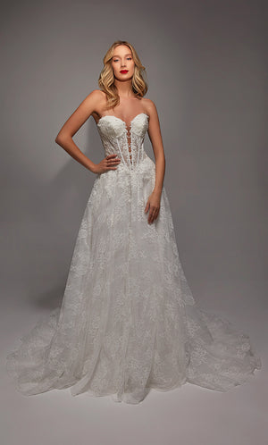 Gowns with lace are considered a timeless, feminine fabric used in the world of special occasions or as lace wedding dresses because there are so many ways to wear it. Lace formal dresses look stunning with both chunky beading as well as light and ethereal sparkle for long and short prom dresses. Lace is a delicate fabric due to its see-through and intricately embroidered patterns; if thick enough, lace’s structure will hide all your body flaws and sins. Soft, stretchy lace is used for long or short lace body con styles and homecoming dresses. ALYCE Paris has the perfect lace prom dresses.