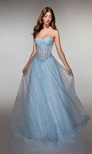 Gowns with lace are considered a timeless, feminine fabric used in the world of special occasions or as lace wedding dresses because there are so many ways to wear it. Lace formal dresses look stunning with both chunky beading as well as light and ethereal sparkle for long and short prom dresses. Lace is a delicate fabric due to its see-through and intricately embroidered patterns; if thick enough, lace’s structure will hide all your body flaws and sins. Soft, stretchy lace is used for long or short lace body con styles and homecoming dresses. ALYCE Paris has the perfect lace prom dresses.