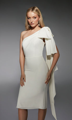 The straight/sheath (or column) silhouette gracefully skims to show off your body’s natural shape. A person with a thicker waist and wider hips will love this silhouette as it hides these flaws very comfortably. An ALYCE Paris formal straight/sheath evening dress style’s straight lines lengthen—and lend an effortless and modern air.