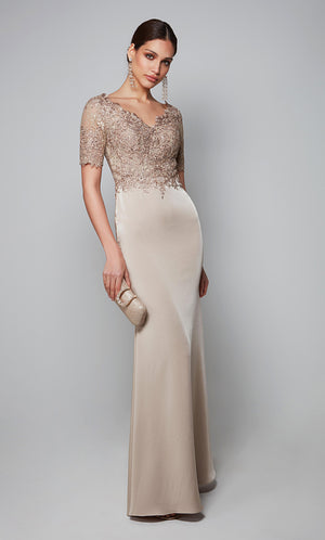 The straight/sheath (or column) silhouette gracefully skims to show off your body’s natural shape. A person with a thicker waist and wider hips will love this silhouette as it hides these flaws very comfortably. An ALYCE Paris formal straight/sheath evening dress style’s straight lines lengthen—and lend an effortless and modern air.