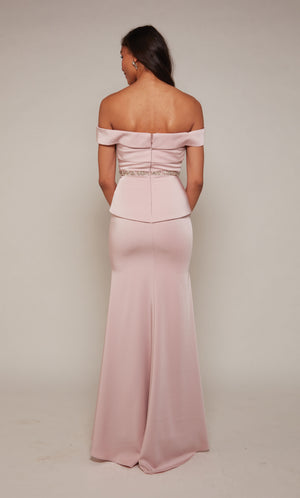 The stunning neckline on off the shoulder prom dresses put the focus on the collarbone and shoulders, and frames your face beautifully. Typically, this formal occasion ball gown style will be straight across the upper chest or in a sweetheart shape, with wide straps/sleeves hitting just below the shoulders. It works best with body types that don't care if your arms can raise up while on the dance floor.
