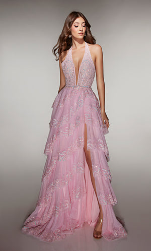 ALYCE Paris 62037 Alyce Long Halter Neckline Embellished A Line Dress
