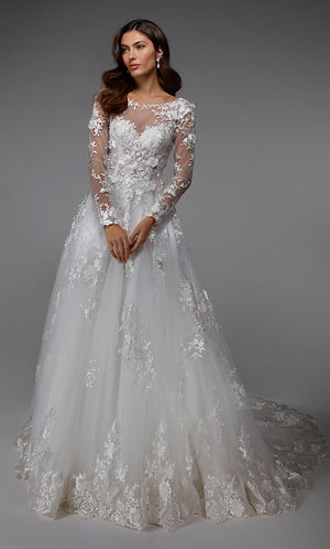 Duchess Alert! A wedding fit for a royal bride is beholden to one of our beautiful ALYCE Paris bridal dresses. ALYCE Paris unique wedding dresses are sure to allure on your big day at price points under $1,000. Find your perfect dream wedding dress available online in our bridal collection in a variety of styles, including black wedding dresses, long sleeve wedding dresses, plus size wedding dresses, even beach wedding dresses. Secret pro tip: call your local retailer to check if this dress can be a custom cut wedding dress in ivory, change the back or add a train! If you find the perfect long white dress, you can always cut down your long formal evening gown into any shapes of short bridal dresses as a last-ditch option!
