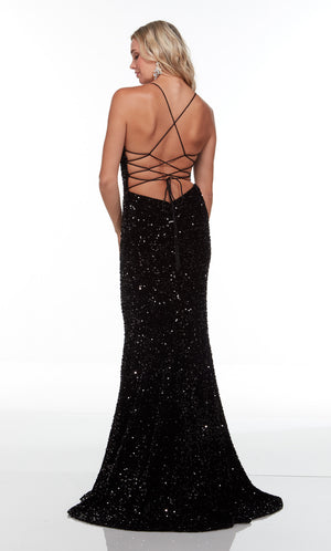 The straight/sheath (or column) silhouette gracefully skims to show off your body’s natural shape. A person with a thicker waist and wider hips will love this silhouette as it hides these flaws very comfortably. An ALYCE Paris formal straight/sheath evening dress style’s straight lines lengthen—and lend an effortless and modern air.