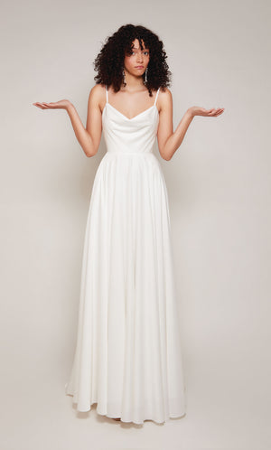 The cowl neckline was first popularized in the 1930s and is recently making a comeback. Cowls have romantic, loose draping at the front neckline or lower back that look great on charmeuse or sexy evening gowns.