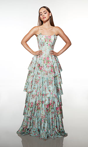 ALYCE Paris 62066 Alyce Long Scoop Neckline Ruffles A Line Dress