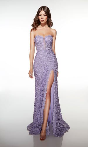 Gowns with lace are considered a timeless, feminine fabric used in the world of special occasions or as lace wedding dresses because there are so many ways to wear it. Lace formal dresses look stunning with both chunky beading as well as light and ethereal sparkle for long and short prom dresses. Lace is a delicate fabric due to its see-through and intricately embroidered patterns; if thick enough, lace’s structure will hide all your body flaws and sins. Soft, stretchy lace is used for long or short lace body con styles and homecoming dresses. ALYCE Paris has the perfect lace prom dresses.