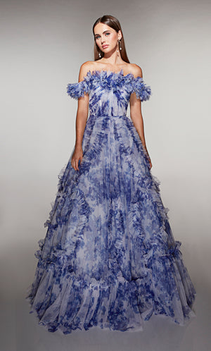 ALYCE Paris 62216 Alyce Long Off The Shoulder Neckline Ruffles Ballgown Dress