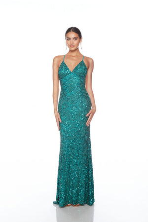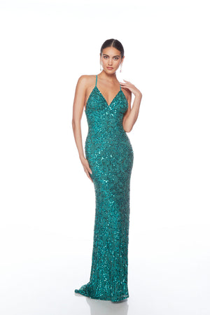 The straight/sheath (or column) silhouette gracefully skims to show off your body’s natural shape. A person with a thicker waist and wider hips will love this silhouette as it hides these flaws very comfortably. An ALYCE Paris formal straight/sheath evening dress style’s straight lines lengthen—and lend an effortless and modern air.