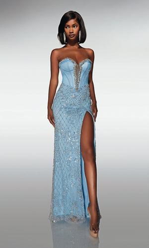The straight/sheath (or column) silhouette gracefully skims to show off your body’s natural shape. A person with a thicker waist and wider hips will love this silhouette as it hides these flaws very comfortably. An ALYCE Paris formal straight/sheath evening dress style’s straight lines lengthen—and lend an effortless and modern air.