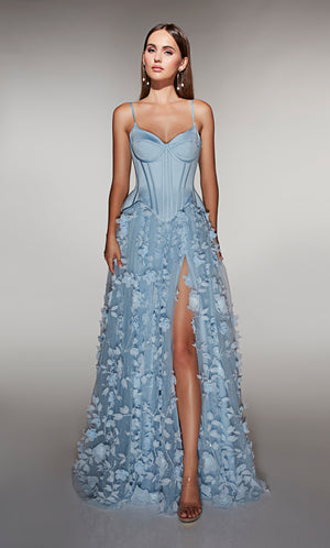 Gowns with lace are considered a timeless, feminine fabric used in the world of special occasions or as lace wedding dresses because there are so many ways to wear it. Lace formal dresses look stunning with both chunky beading as well as light and ethereal sparkle for long and short prom dresses. Lace is a delicate fabric due to its see-through and intricately embroidered patterns; if thick enough, lace’s structure will hide all your body flaws and sins. Soft, stretchy lace is used for long or short lace body con styles and homecoming dresses. ALYCE Paris has the perfect lace prom dresses.