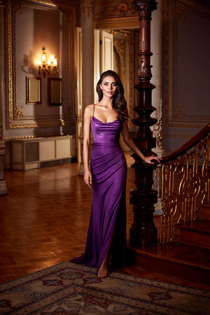 Show a little leg with an eye catching high slit, open split or folded-over slit in long dresses or prom gowns. Sexy prom dresses with slits work best on long prom dresses and ball gowns. Any body type that is comfortable with a showing can wear formal dresses with heart-stopping high slits - especially a red dress with slit.