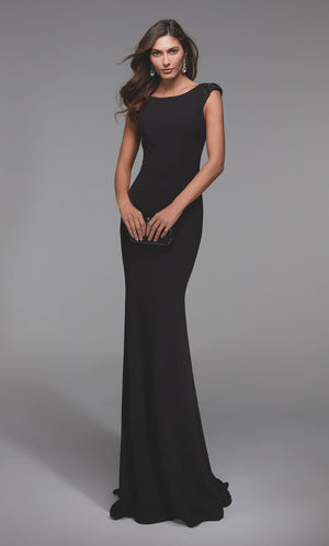 The straight/sheath (or column) silhouette gracefully skims to show off your body’s natural shape. A person with a thicker waist and wider hips will love this silhouette as it hides these flaws very comfortably. An ALYCE Paris formal straight/sheath evening dress style’s straight lines lengthen—and lend an effortless and modern air.