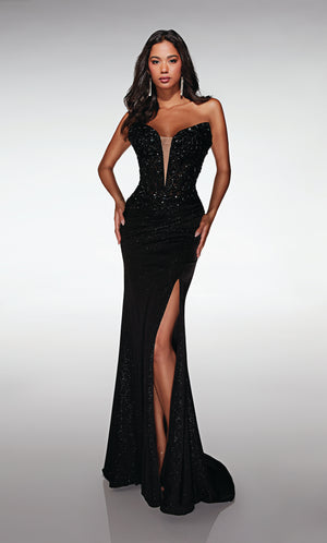 The straight/sheath (or column) silhouette gracefully skims to show off your body’s natural shape. A person with a thicker waist and wider hips will love this silhouette as it hides these flaws very comfortably. An ALYCE Paris formal straight/sheath evening dress style’s straight lines lengthen—and lend an effortless and modern air.