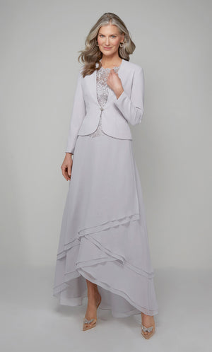 A two-piece twist on the ALYCE Paris traditional formal evening suit, jacket separates—like a formal jacket pants set or a dress with a removable jacket —allow you to switch things up for a second (or third) gala look.