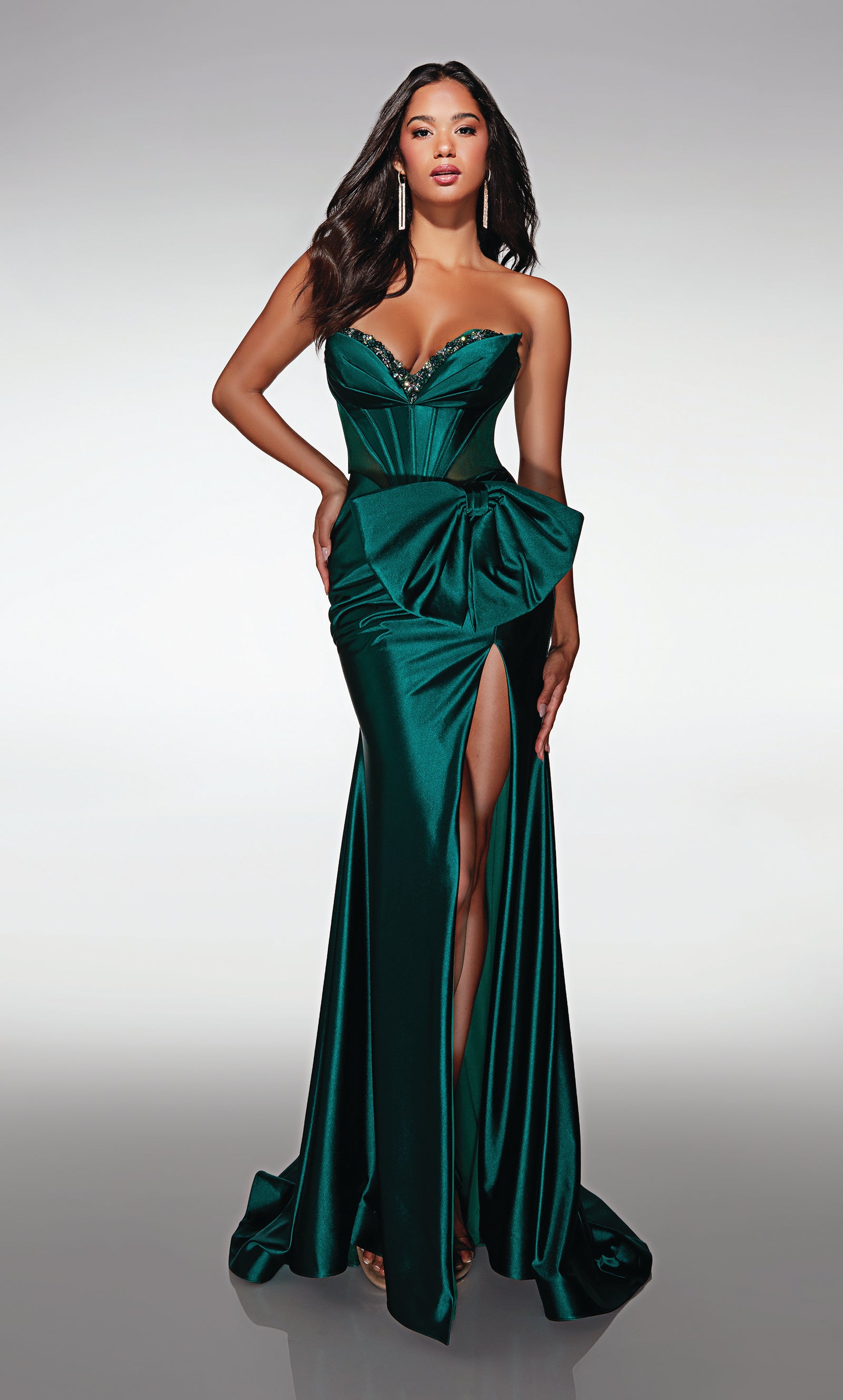 Shop beautiful designer 2026 prom dresses from the iconic ALYCE Paris online collection, with a variety of trendy sheer corset-style prom dresses, stunning high neck prom dresses, unforgettable open-back strappy gowns, flattering mermaid prom gowns, metallic satin prom dresses, and elegant A-line ball gowns that will stop traffic on your special night! Browse a wide range and find the best selection of the latest and most stylish long prom styles and short prom dresses in bright, bold colors that turn heads at any high school prom on the biggest night of the year! Go all out for senior prom in a fabulous one-shoulder black prom dress with a high slit and pair it with dramatic gold heels, which is an ensemble that you can wear again on the dance floor at a sorority event; For junior prom dances, shop our affordable selection of sleek, long or short, simple prom dresses; To buy your dream dress or plus size prom dresses up to size 32, use our store finder tool in the menu bar; Your perfect prom dress and the perfect fit exist at any authorized prom dress shop selling Alyce Paris!
