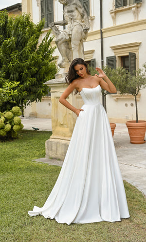 Duchess Alert! A wedding fit for a royal bride is beholden to one of our beautiful ALYCE Paris bridal dresses. ALYCE Paris unique wedding dresses are sure to allure on your big day at price points under $1,000. Find your perfect dream wedding dress available online in our bridal collection in a variety of styles, including black wedding dresses, long sleeve wedding dresses, plus size wedding dresses, even beach wedding dresses. Secret pro tip: call your local retailer to check if this dress can be a custom cut wedding dress in ivory, change the back or add a train! If you find the perfect long white dress, you can always cut down your long formal evening gown into any shapes of short bridal dresses as a last-ditch option!