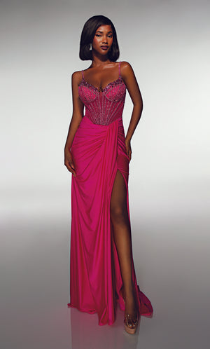 The straight/sheath (or column) silhouette gracefully skims to show off your body’s natural shape. A person with a thicker waist and wider hips will love this silhouette as it hides these flaws very comfortably. An ALYCE Paris formal straight/sheath evening dress style’s straight lines lengthen—and lend an effortless and modern air.
