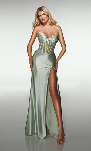 The straight/sheath (or column) silhouette gracefully skims to show off your body’s natural shape. A person with a thicker waist and wider hips will love this silhouette as it hides these flaws very comfortably. An ALYCE Paris formal straight/sheath evening dress style’s straight lines lengthen—and lend an effortless and modern air.