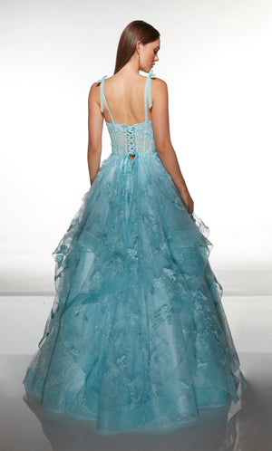 Gowns with lace are considered a timeless, feminine fabric used in the world of special occasions or as lace wedding dresses because there are so many ways to wear it. Lace formal dresses look stunning with both chunky beading as well as light and ethereal sparkle for long and short prom dresses. Lace is a delicate fabric due to its see-through and intricately embroidered patterns; if thick enough, lace’s structure will hide all your body flaws and sins. Soft, stretchy lace is used for long or short lace body con styles and homecoming dresses. ALYCE Paris has the perfect lace prom dresses.