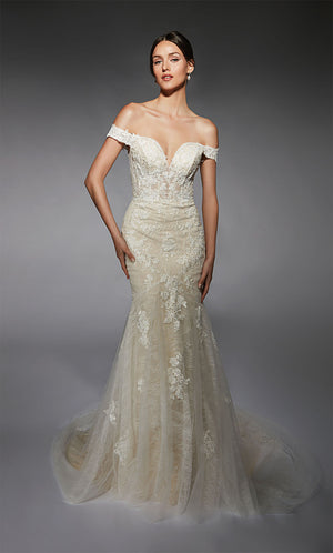 Alyce Paris 7118 Bridal Off the ombro espartilho e vestido de flare